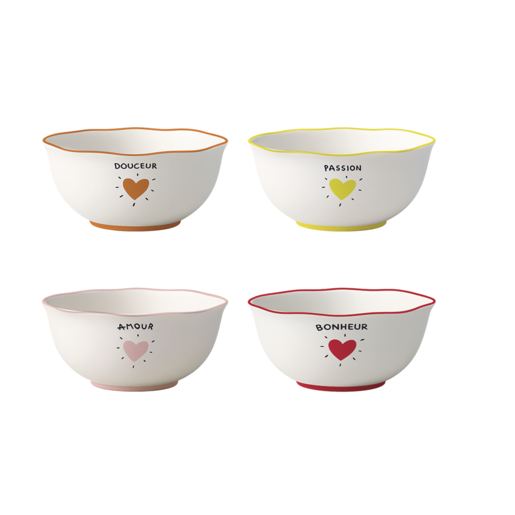 Set de 4 coupelles cœur en faïence colorée 14 cm