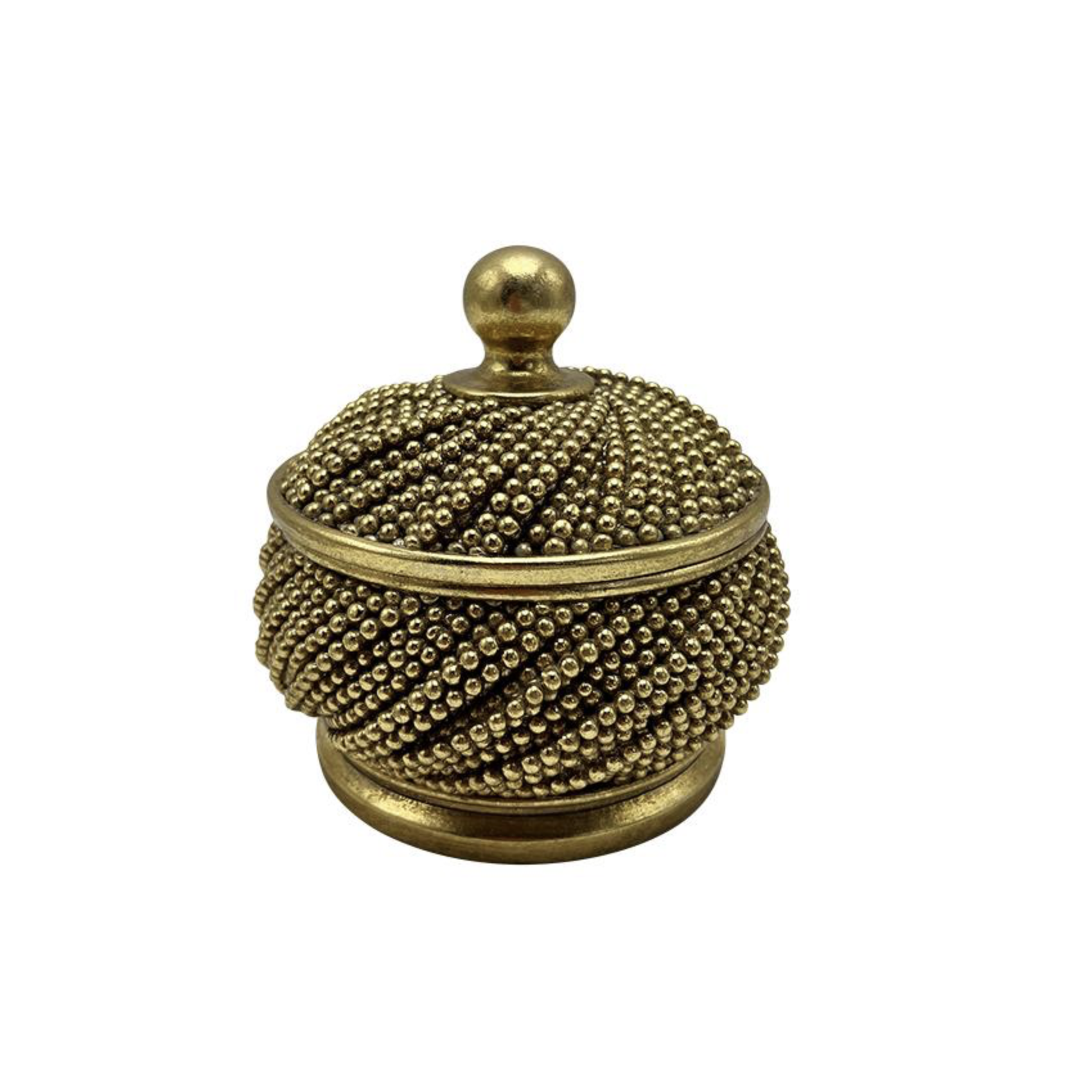 Boîte Bijoux Perlée Dorée – Écrin Décoratif Vintage 13x12.5cm