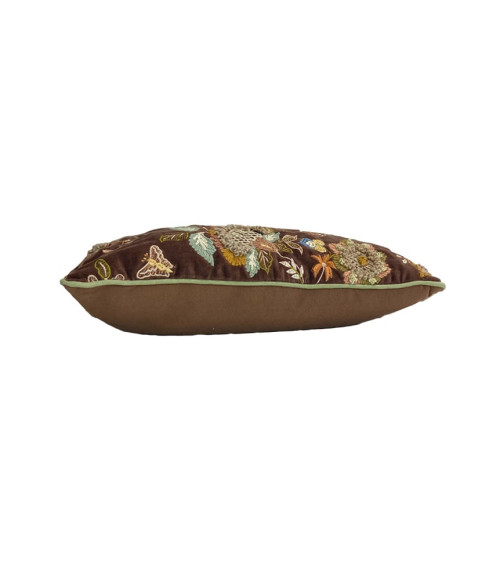 Coussin en velours marron et broderies