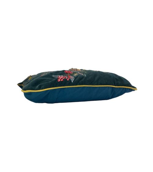 Coussin en velours bleu et broderies