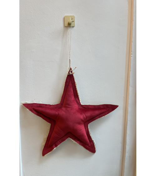 Quick view Add to cart Liste de souhaits Add to Compare Étoile à suspendre en velours rouge - L44xH31cm Prix 40,00 € Une superbe étoile à suspendre en velours rouge lisse et dos en jute née d'un travail artisanale 100% français. L44xH31 cm Ajoutez la magie...