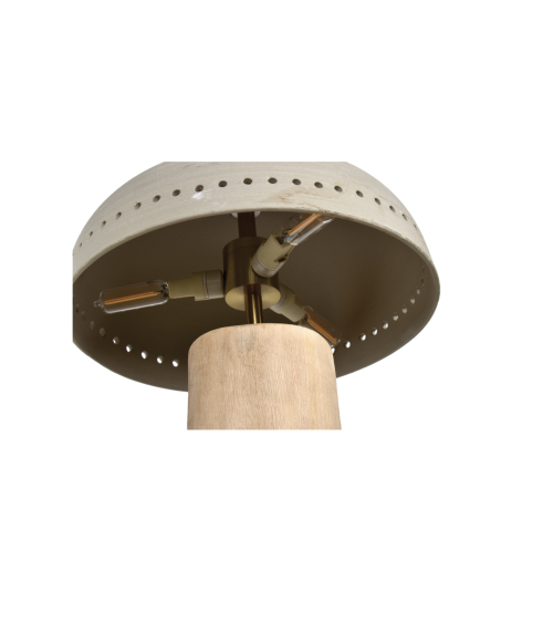 Cette lampe à poser bois et faïence séduit par son pied en bois brut et son abat-jour en faïence finement perforé, laissant apparaître de subtils points lumineux pour une atmosphère douce et enveloppante.