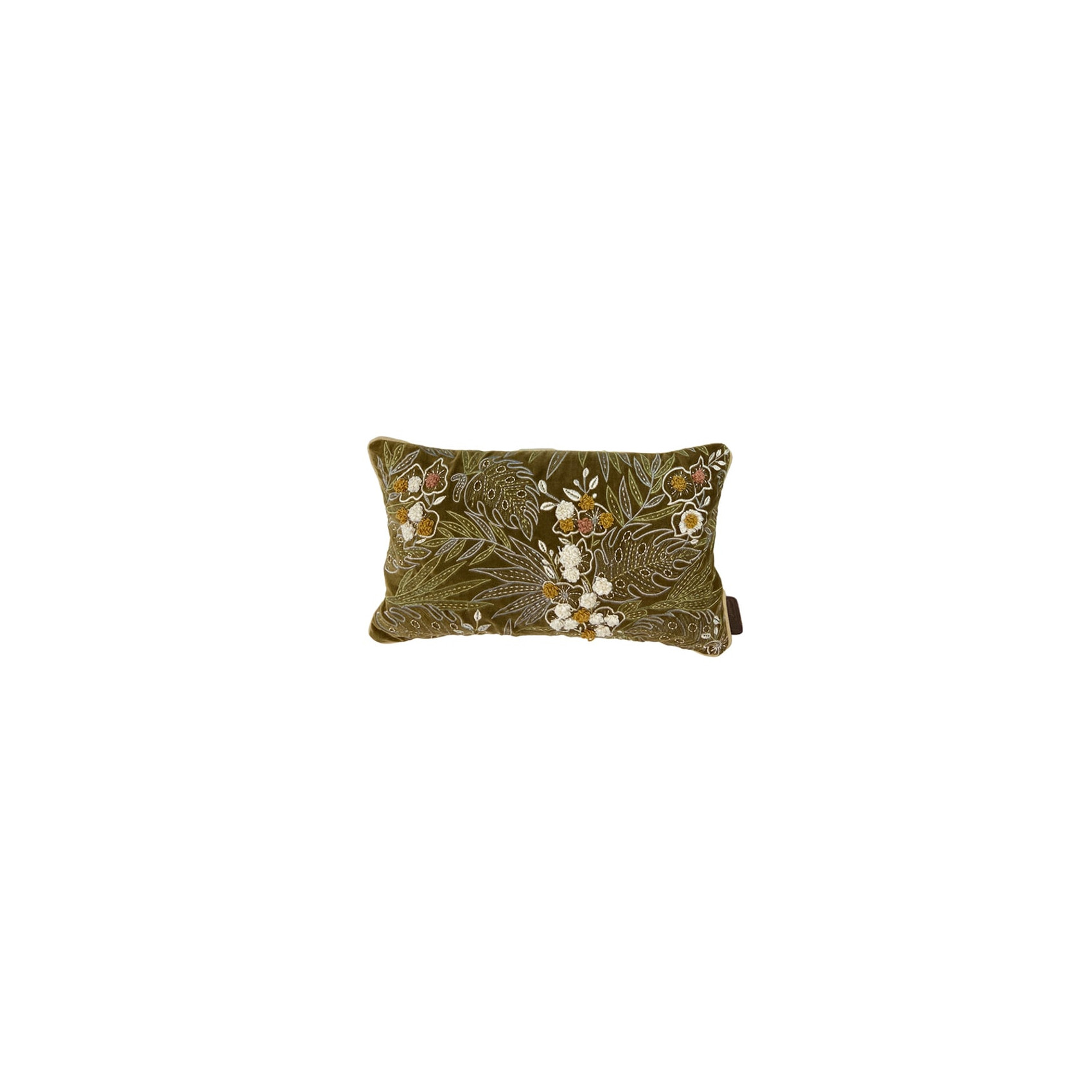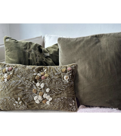 Optez pour ces coussins en velours et coton avec leurs beaux motifs floraux tissés main.